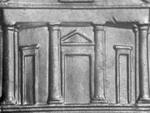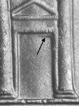 Class VIII doubling shows below the upper right portion and to the right of the left side of the door frame on the center door above the steps.