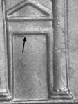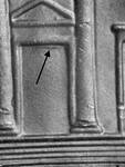 Class VIII doubling shows above and below the upper left portion of the door frame on the center door above the steps.