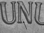 - Rev: Two die dots on center door; die gouge to lower left of U of UNITED; die gouge in lower left corner of left arch.