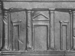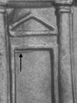 left side of the triangle above the center door, and between the left column and upper
