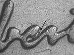 • Obv:  Die chip between E and R of LIBERTY.
