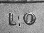 - Rev: Die gouge mounds below FI of FIVE and to left of F of FIVE.