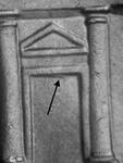 Very nice Class VIII doubling shows below the upper left portion of the door frame on the center door above the steps. Doubling also shows between the column to the left of the door frame and the upper left side of the frame.