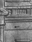 Very nice Class VIII doubling shows below the upper left portion of the door frame on the center door above the steps. Doubling also shows below the triangle above the center door, and between the left column and upper left side of the door frame.