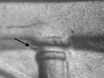 - Rev: Die gouge below B of PLURIBUS; die gouge inside lower portion of long left window.