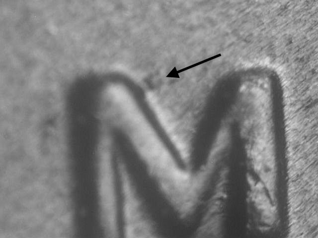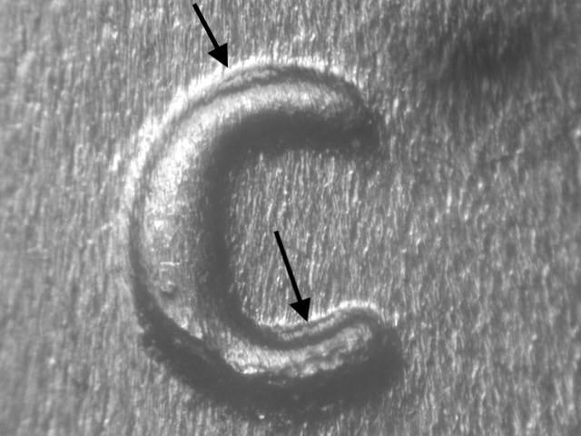 - Rev: Die gouge to lower right of last O in MONTICELLO.