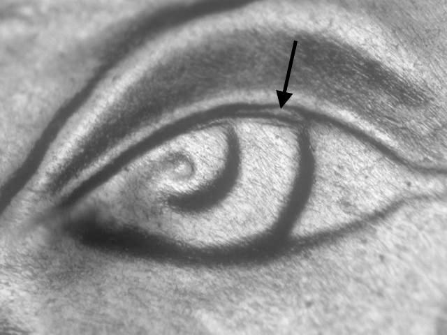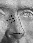 Class VIII doubling shows both of Jefferson's eyelid and his nose.