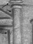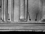 Very nice class VIII doubling shows on the large semicircular window, on the upper portions of columns number 3 and 4, on the upper right potion of the center door frame and on the door frame of the door that is to the right of the center door.