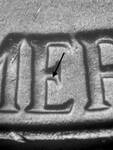 - Rev: Die gouge above long left window; die gouge inside long right window.