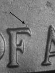 - Rev: Die gouge to the upper right of the last A of AMERICA; die gouge above E of UNITED.